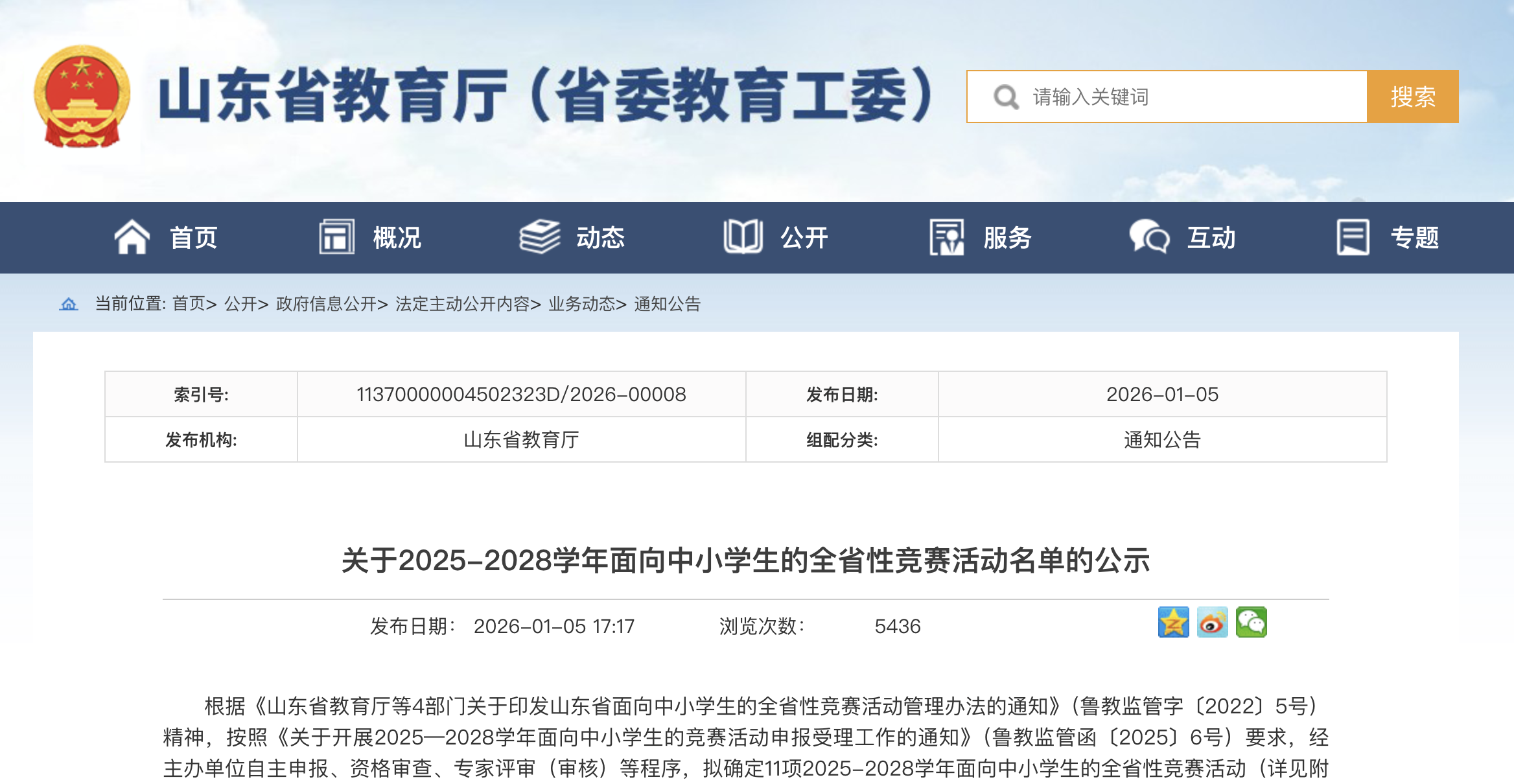 山东:关于2025-2028学年面向中小学生的全省性竞赛活动名单的公示